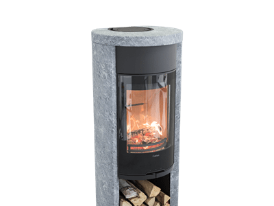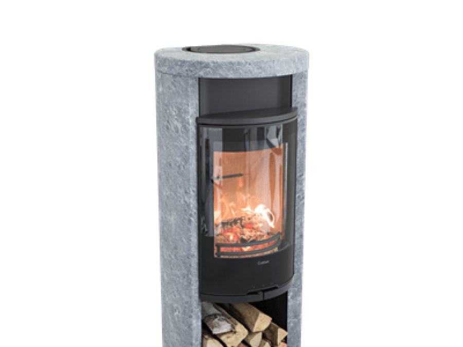 Der Contura 620TG Style ist mit wärmespeicherndem Speckstein verkleidet. Das Modell verfügt über eine moderne Glastür.